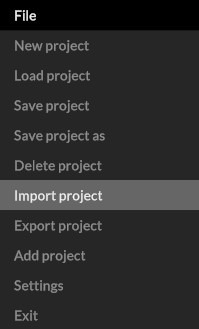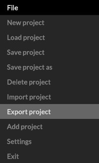 To export a project, select “File / Export project” in the file menu and assign a new name for your project file.