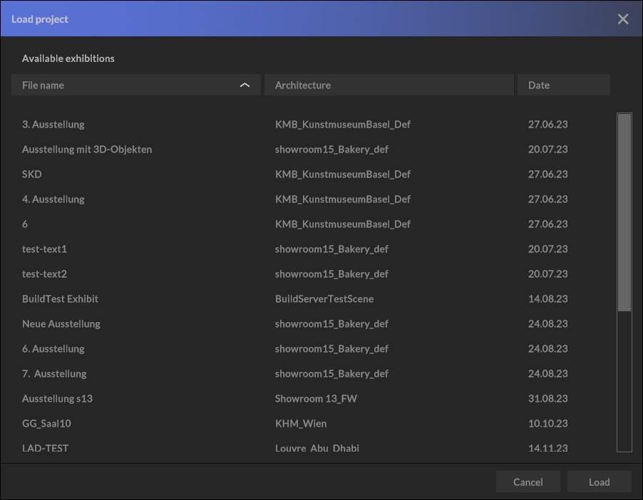 Click on “Load” to confirm your selection and the project will be loaded.