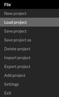 To load a saved project, go to “File / Load project” via the file menu.